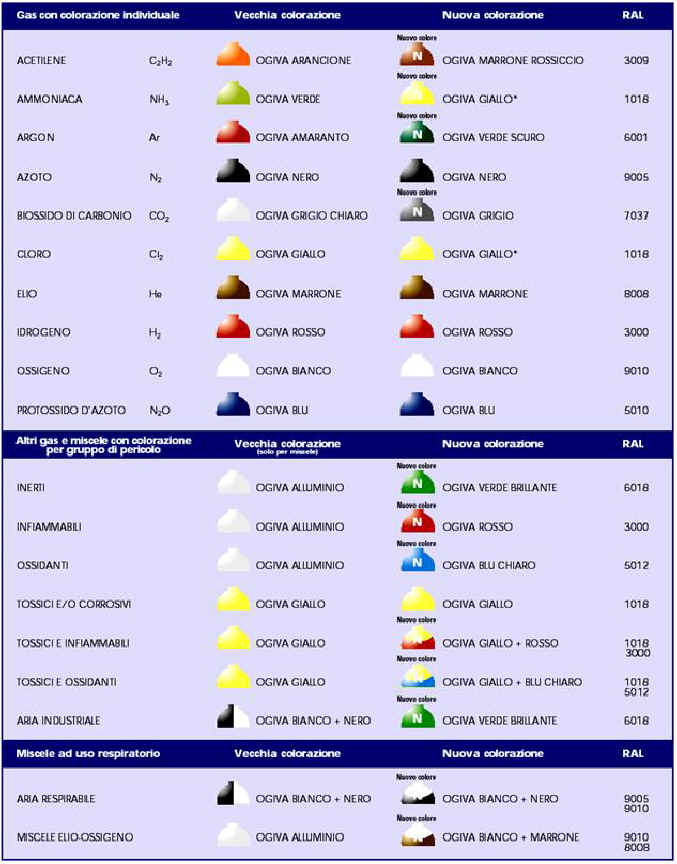 delle bombole in cui i gas sono trasportati. Tale colore è